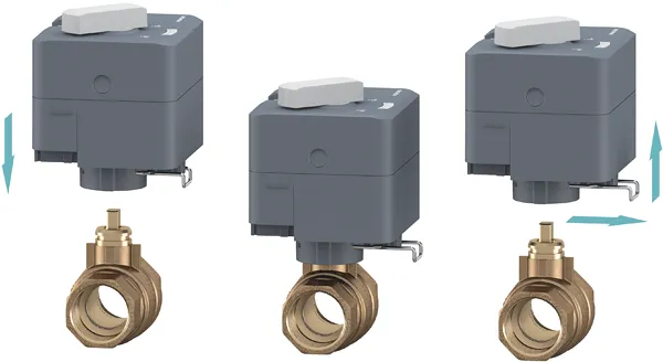 Die Ventile können auch in Kombination mit anderen Stellantrieben aus der AQD-Familie eingesetzt werden, die über ein 3-Punktoder