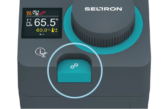 Die Einstellungstasten des Reglers befinden sich unter unter der Taste für manuelles Verstellen. Damit ist kein unberechtigter Zutritt zu den Regler-Einstellungen möglich.