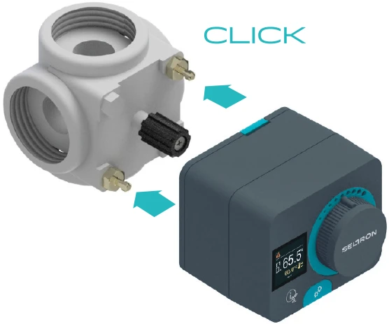 Innovatives Zubehör und Montagesystem ermöglichen eine schnelle Montage und Demontage des kompakten Reglers ACD auf das/vom Mischventil, meistens ohne Werkzeug. Es gibt Zubehör für die meisten Mischventile auf dem Markt.
